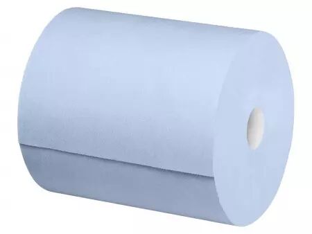 Bobine d'essuie-tout "Comfort" en papier recyclé, adapté à tous les usages. Le papier en ouate de cellulose recyclée double épaisseur est prédécoupé en feuilles de L36,5 x H35 cm. De couleur bleue clair, elles sont absorbantes et résistantes aux déchirures. Parfait pour la cuisine, l'atelier ou les sanitaires en entreprise.