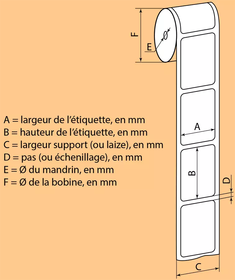 B = hauteur de l'étiquette 60 mm en continu, sur 51 m