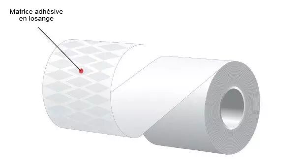 Info sur papier la couche thermique de l'étiquette est "protégée" afin de résister aux projections de liquides, d'huiles, etc. sans papier support siliconné
