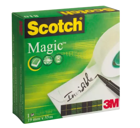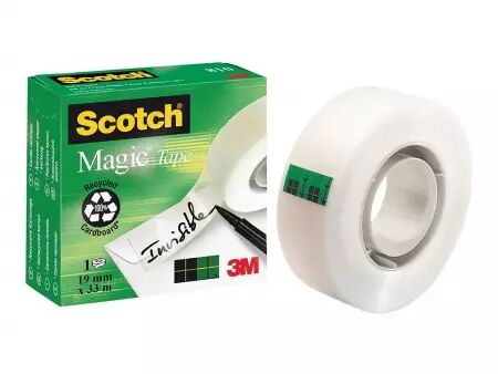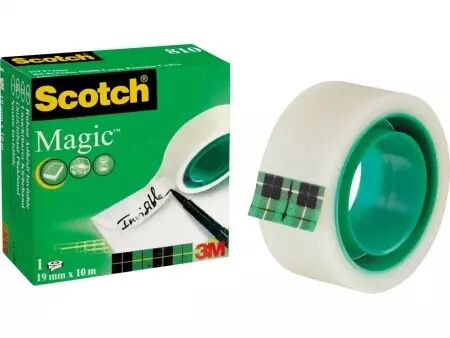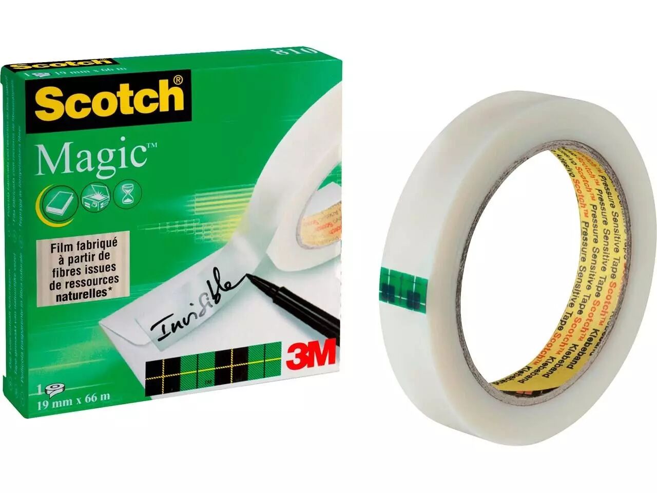 Ruban adhésif Scotch 3M, en acétate de cellulose, fabriquée à partir de bois, presque invisible, avec un bon pouvoir adhésif, indétectable à la photocopie.