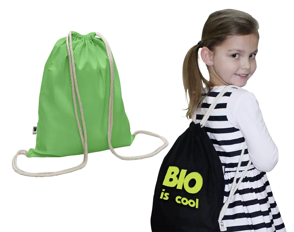 Un sac très polyvalent avec deux cordons solides à serrer, très pratique par exemple en tant que sac à dos, sac de sport ou sac à chaussures. En coton bio et équitable, grammage 140 g/m². Certifié coton bio et équitable, processus complet de fabrication certifié GOTS.