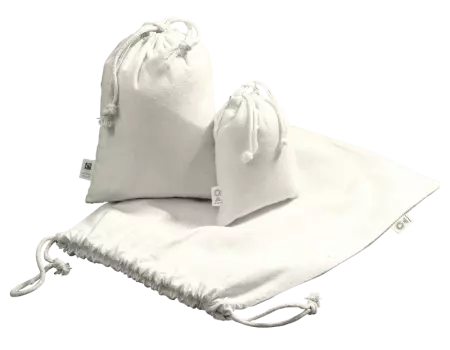 Une étiquette cousue sur le côté des articles présentés sur cette gamme renseigne sur la qualité environnementale et sociale de ces sacs en coton bio de qualité supérieure rigoureusement contrôlé : l'ensemble du processus de production est certifié GOTS (Global Organic Textile Standard). Ils sont également porteurs du label commerce équitable.