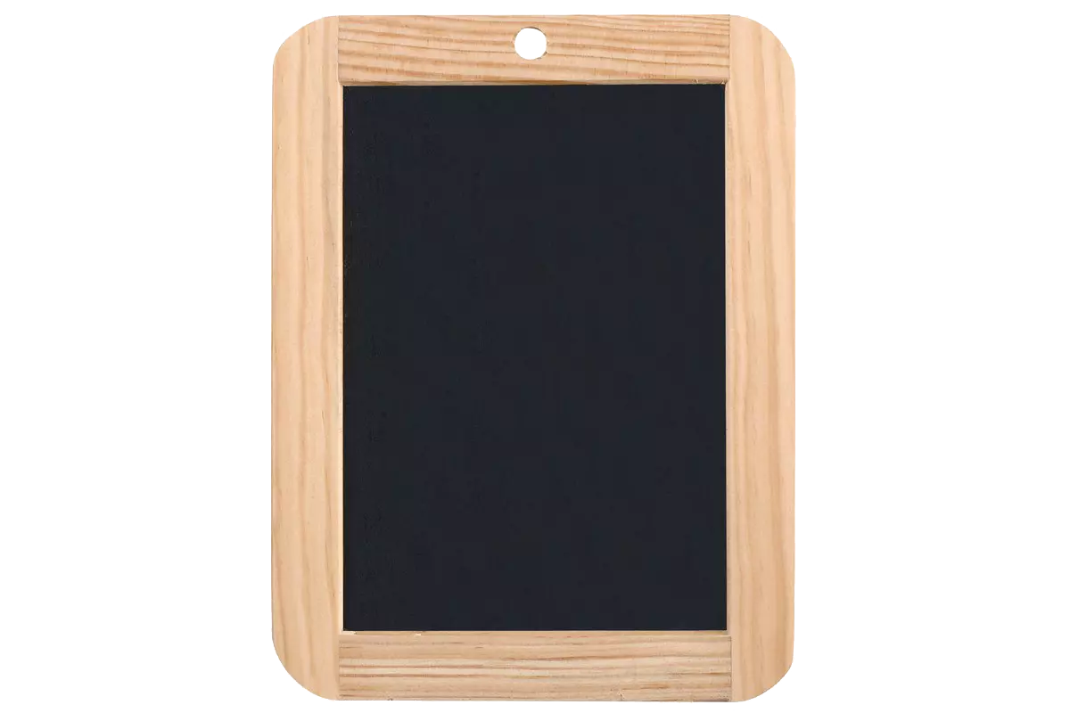 Enfin une ardoise en pierre naturelle, comme autrefois, avec un cadre en bois de sapin. Un trou de suspension permet d'accrocher l'ardoise au mur. Une face de l'ardoise est unie et l'autre est quadrillée. Dimensions totales : L145 x H190 mm, surface de l'ardoise: L110 x H150 mm.