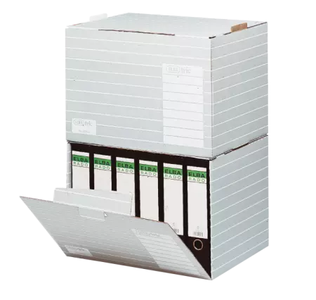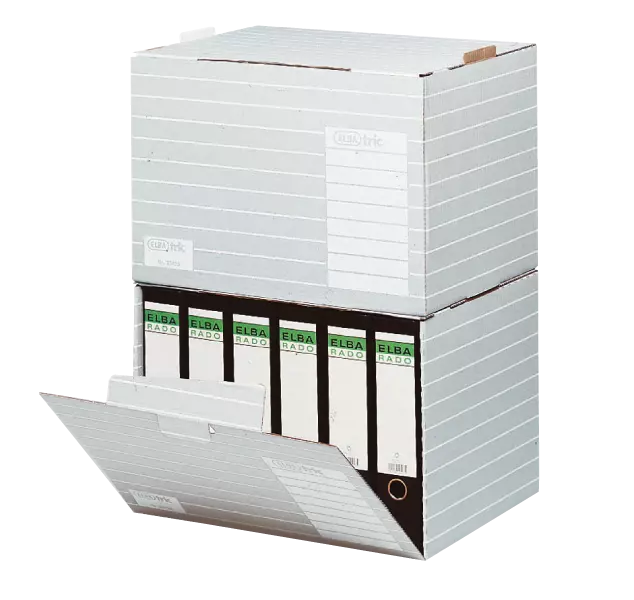 ELBA propose une gamme très complète de boîtes à archives et conteneurs à classeurs en carton solide 100% recyclé, inscriptibles, modulables, compactes.