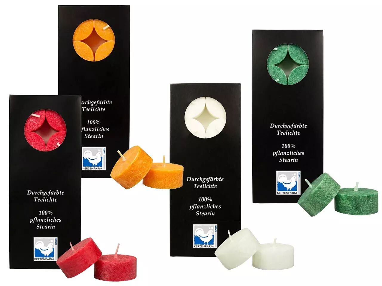 Ces bougies chauffe-plat permettent de créer de magnifiques et chaleureuses décorations de table. Les bougies chauffe-plat teintées dans la masse de Kerzenfarm, sans enveloppe en aluminium, sont parfaites pour créer une ambiance apaisante et peuvent être utilisées dans un photophore. Les bougies en stéarine végétale se consument sans odeur, peu de suie, avec une flamme claire et douce. Chaque bougie brûle environ pendant 4 heures. Disponible en différentes couleurs. Ø 3,8 x 1,8 cm. Paquet de 10 bougies.