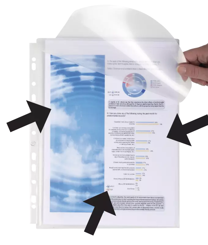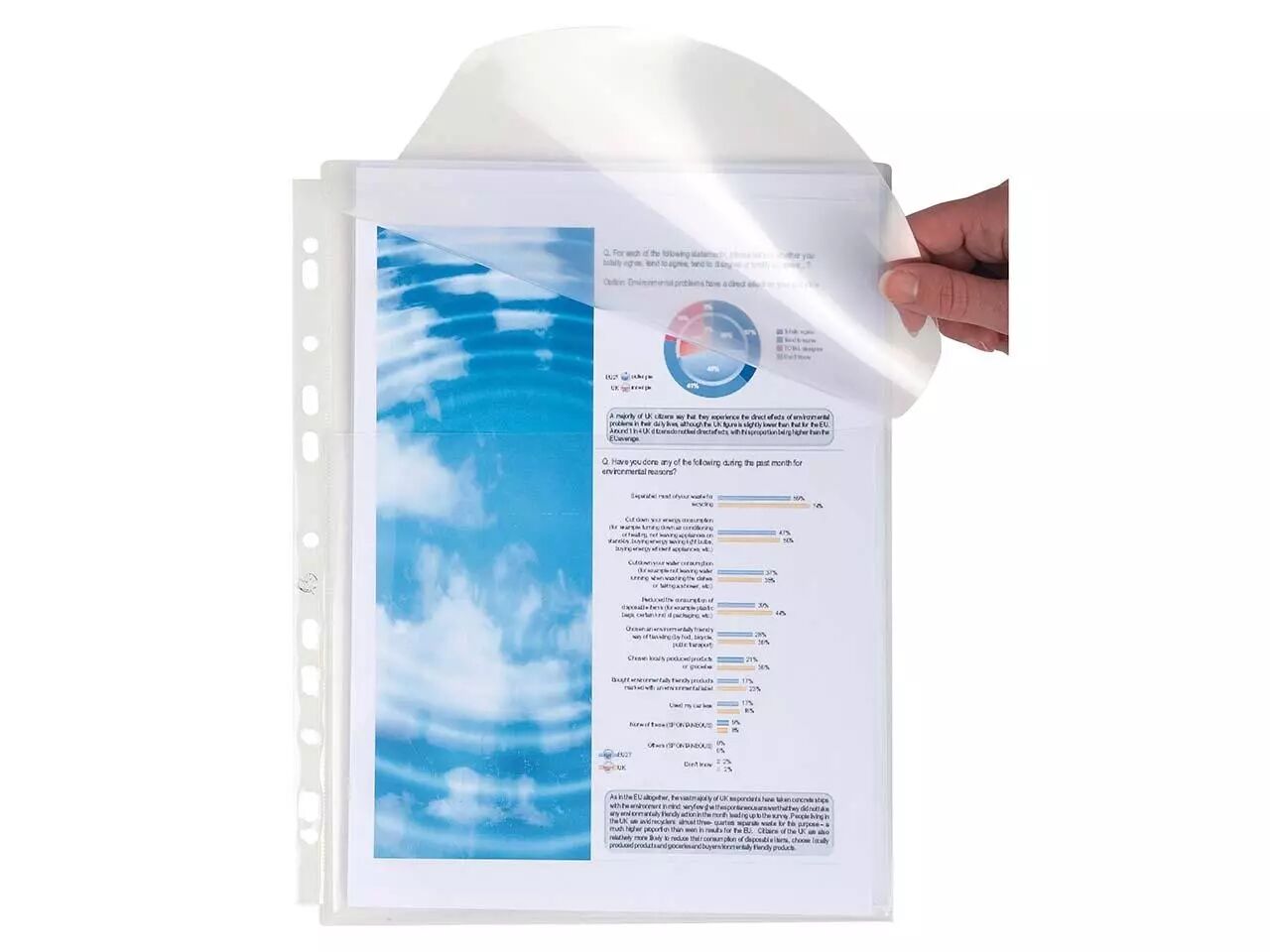 D'une forte consolidation de 200 ?, pochette perforée ouverte au dessus avec bord pliable, extensible jusqu'à 25 mm pour classer ses documents.