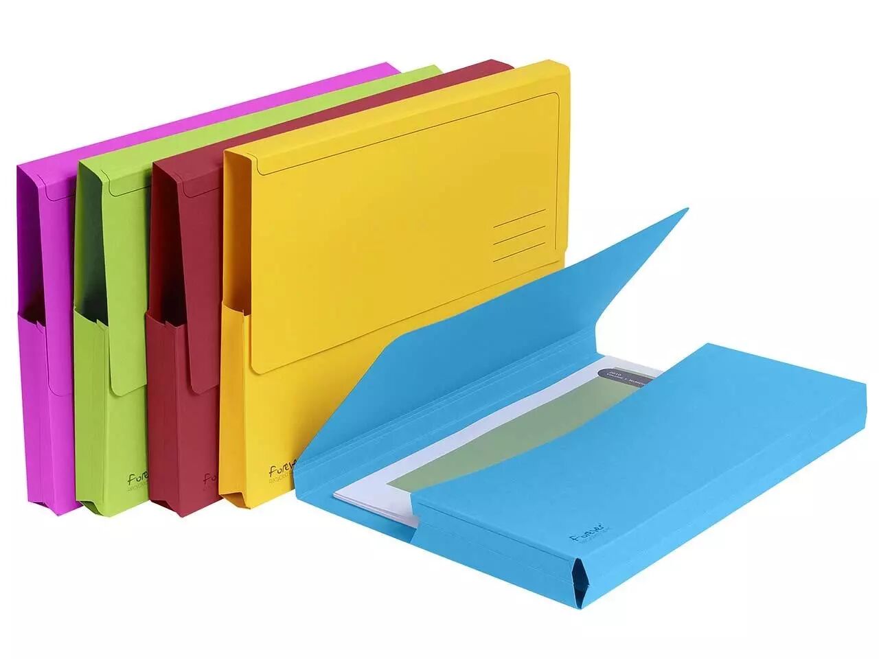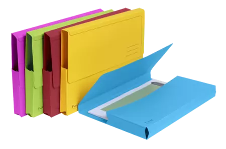 Grâce au rabat protecteur, les documents sont à l'abri. Avec son soufflet, la chemise peut s'ouvrir sur 2 cm, permettant de stocker environ 200 feuilles (80 g/m²). Disponible en 4 jolis coloris ou en assortiment de couleurs (2 bleus, 2 verts, 2 jaunes, 4 rouges). En carton 100% recyclé labellisé «Ange Bleu» de 290 g/m². Pour format A4, L 24,5 x P 32,5 cm. 1 paquet = 10 pièces.
