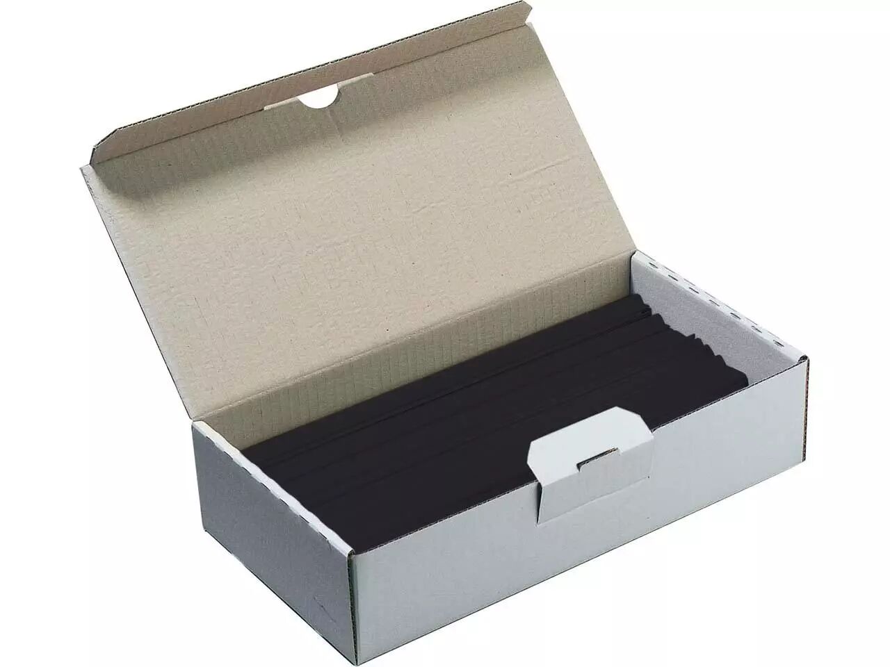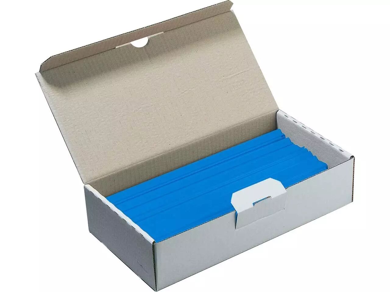 Baguettes à relier en polyéthylène, très élastiques, pour relier jusqu'à 20 feuilles 80 g/m². Coins arrondis spécialement étudiés pour glisser les feuilles. Plastique sans chlore ni additifs de plastification. Couleur sans métaux lourds. Boîte en carton, contient 100 baguettes. En cinq couleurs.