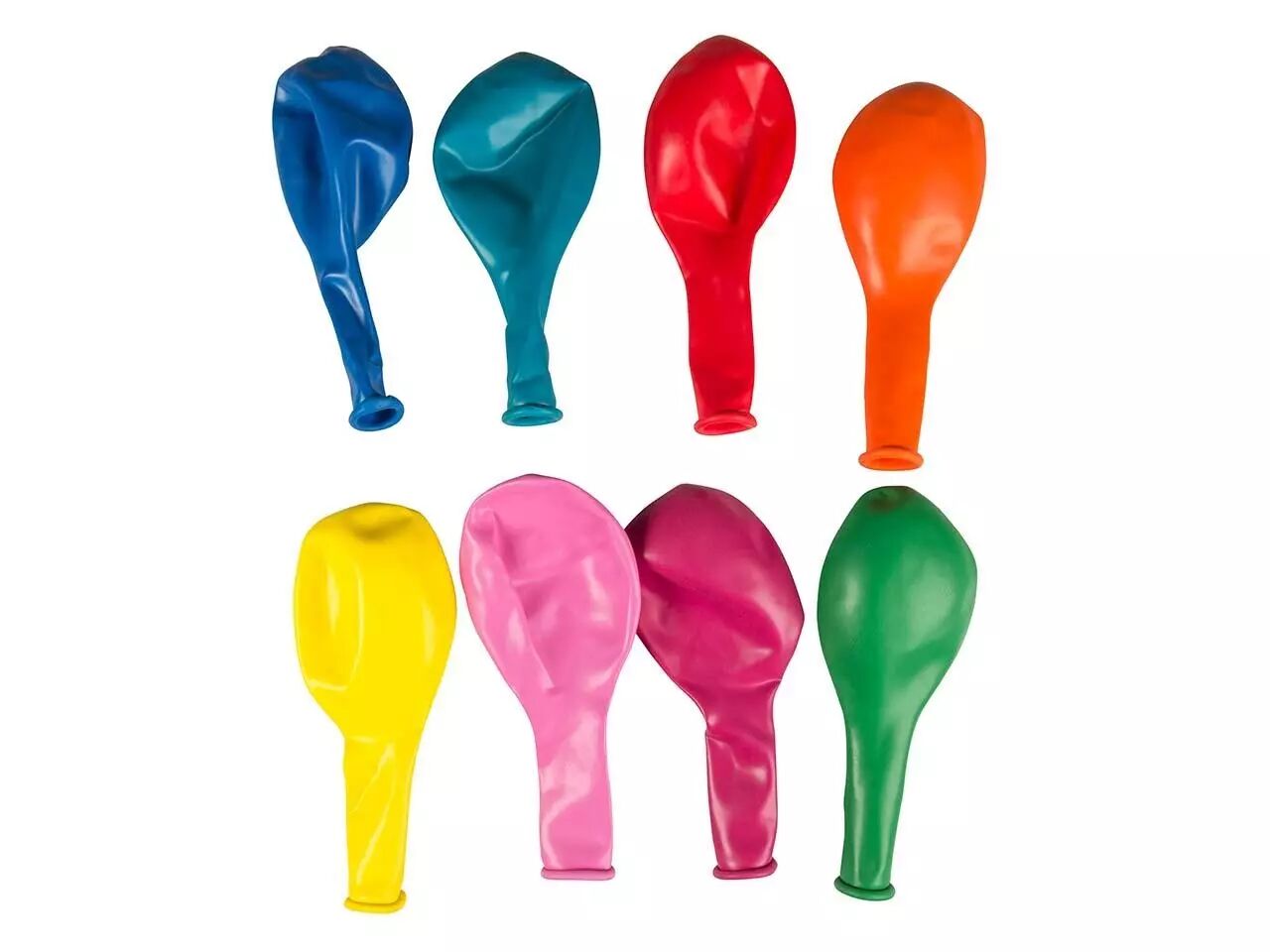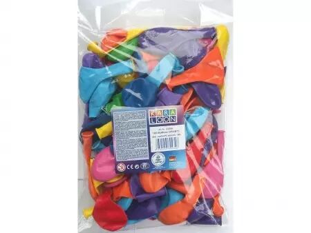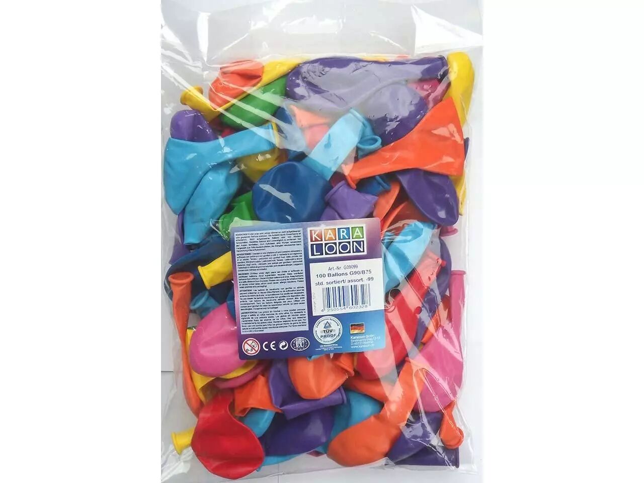 Ballons de baudruche fabriqués en Italie, certification allemande TÜV, garantis sans résidus toxiques. En latex, couleurs sans métaux lourds. Contrôle régulier, par le TÜV de Rhénanie, des matières premières jusqu'au produit fini. Par 100. Couleurs assorties. Diam. : 28 cm.