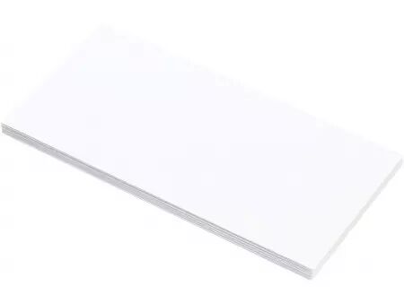 Enveloppes avec fermeture autocollante et bande protectrice sans fenêtre. Blancheur 103% selon la norme DIN ISO, impossible à distinguer visuellement des documents fibres vierges. Papier 100% recyclé labelisé ange bleu. Existe en deux tailles : DIN lang 110 x 220 mm (en paquet de 100 pièces ou carton de 1000 pièces) et C4 229 x 324 mm (en paquet de 25 et carton de 250 pochettes).