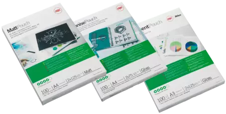 Pochette à plastifier pour plastifieuse. Toutes sortes de formats en aspect mat et lisse transparent. Grande qualité, en PET+EVA recyclable (EVA = éthylène-acétate de vinyle) : base polyester sans chlore ni métaux lourds. Paquet de 100 pochettes.