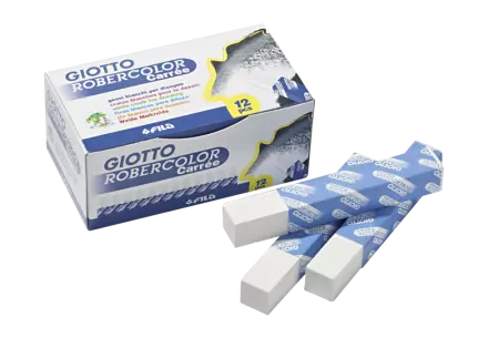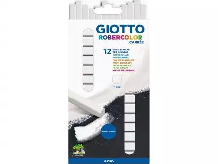 Craies Giotto très solides, de section carrée, idéales pour l'écriture sur tableau noir ou ardoise. Fabriquées avec de la véritable craie de Champagne, les craies GIOTTO sont à base de carbonate de calcium pur.  Chaque craie mesure 89 mm  x 12,5 mm². Boîte carton de 12 craies blanches.