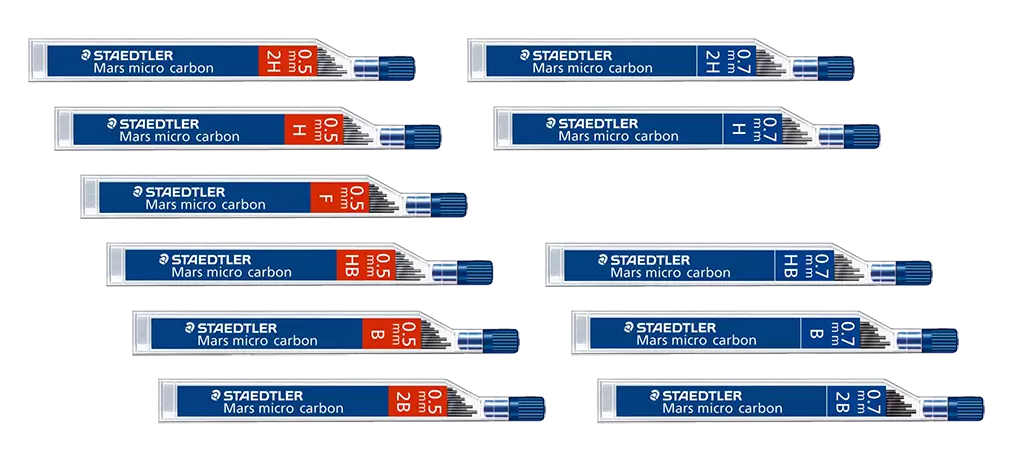 Les mines Mars micro carbonne de Staedtler sont fabriquées selon un procédé innovant sans PVC ni plastifiant, et sont composées à 90% de ressources naturelles. De part leur élasticité, elles bénéficient d'une excellente résistance à la rupture. Elles conviennent à tous les porte-mines calibrés, glissent en douceur sur le papier et les papiers cartonnés, offrant une belle qualité d'écriture. S'efface à la gomme. Fabriqué en Allemagne. Étui de 12 mines.