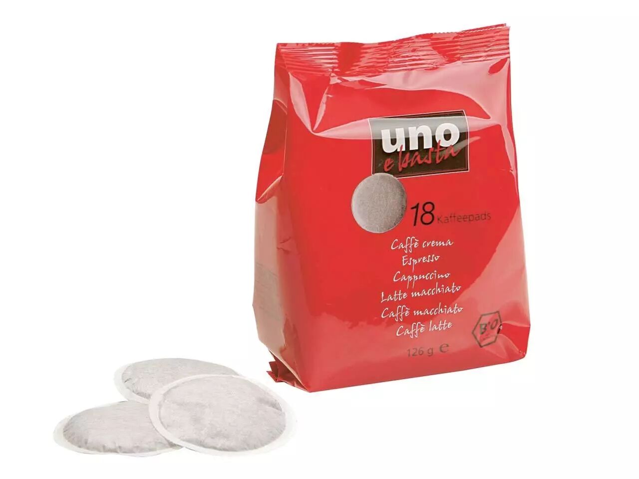 Le paquet de 18 dosettes de café bio «Uno e basta»