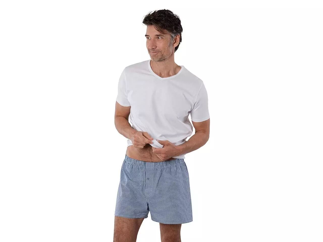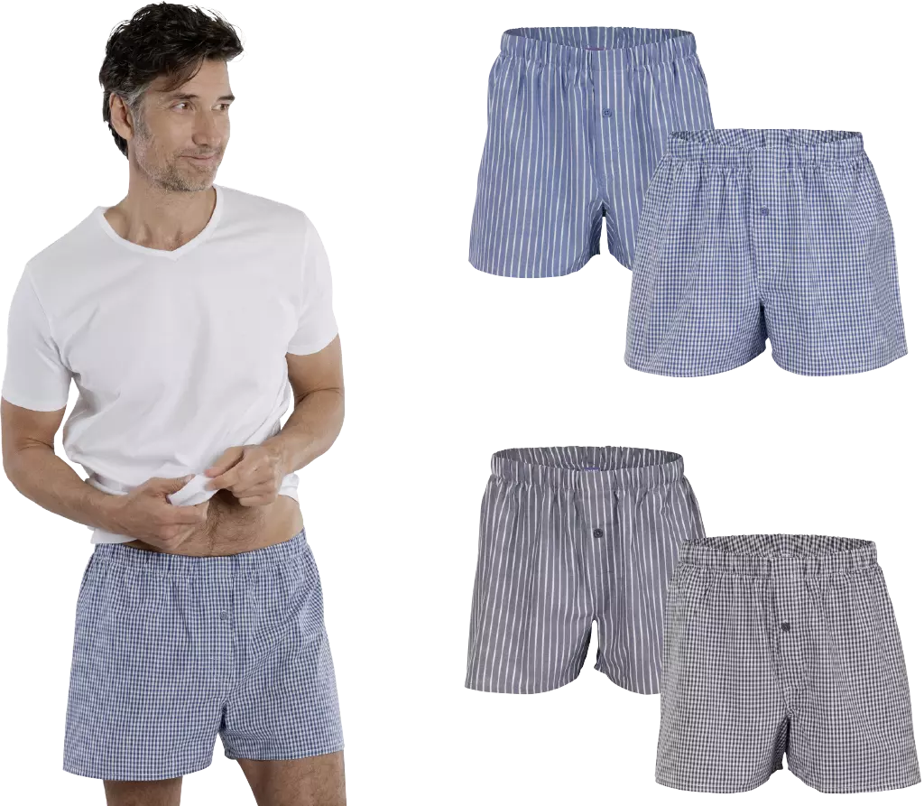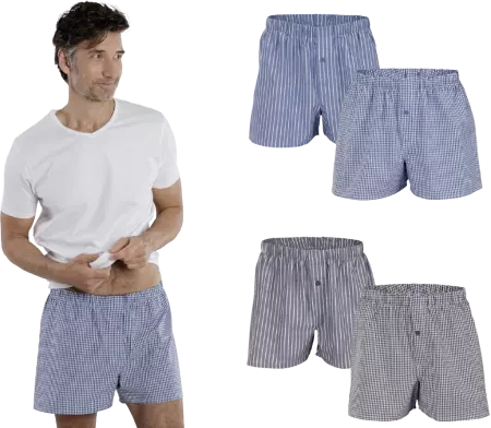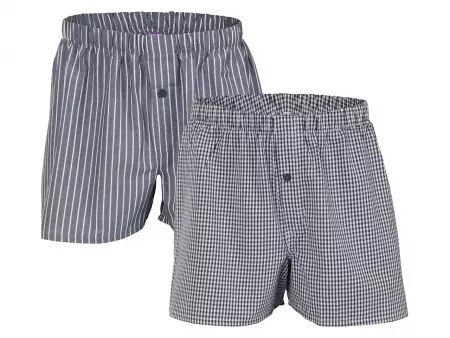 Lot de deux caleçons assortis à prix économique : caleçons à motif très agréables à porter, doux, à la coupe plutôt large et à la taille élastique pour un port confortable et une bonne tenue. Un lot consiste en un caleçon à rayures et l'autre à motifs pied de poule. Ouverture avec une petite boutonnière. Le lot de 2 caleçons.