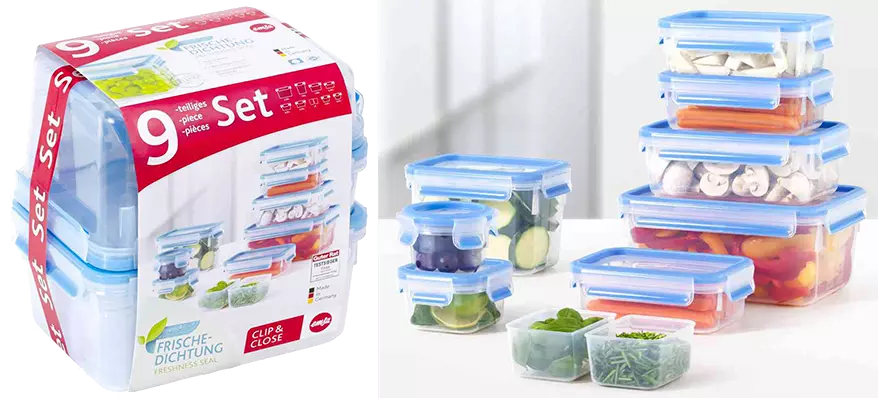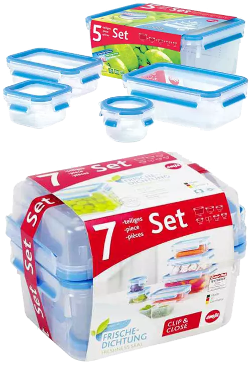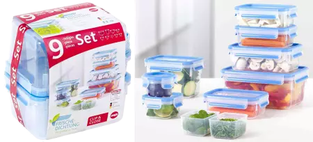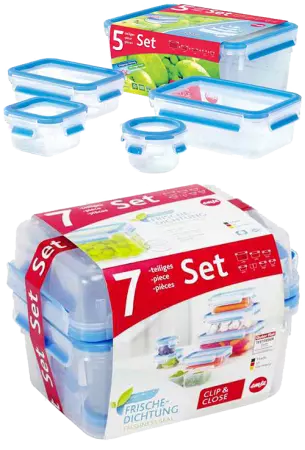 Boîte de conservation à fermeture à clip pour un transport sûr : le joint lié au couvercle assure une parfaite herméticité et les rend idéal pour le transport des aliments liquides. En plastique (polypropylène recyclable), ces boîtes sont également hygiéniques et garanties sans bisphénol A. Assortiment peu encombrant car les boîtes s'emboîtent les unes dans les autres. Avec graduation intégrée, lavable au lave-vaisselle, adapté aux micro-ondes et au congélateur. Disponible en 3 assortiments différents.