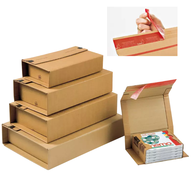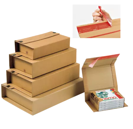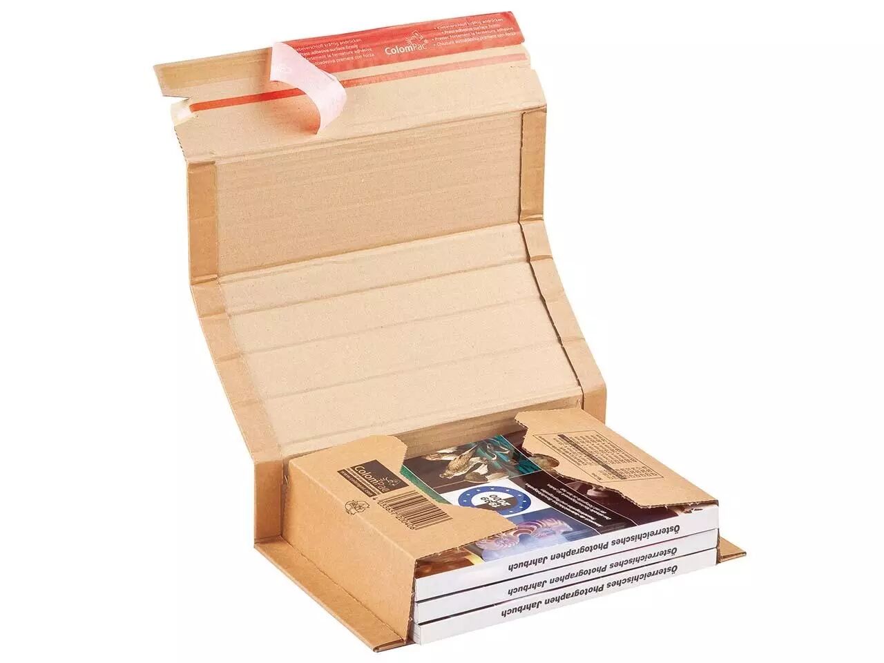 Carton d'expédition spécialement conçu pour l'envoi de livres, CD, DVD, etc. En carton ondulé solide avec des rabats latéraux qui couvrent les arêtes et qui protègent bien le colis. Pour les formats de livres les plus courants, ajustables en épaisseur jusqu'à 80 mm. Avec fermeture autocollante pratique. Vendu par lot de 20.