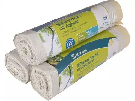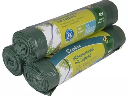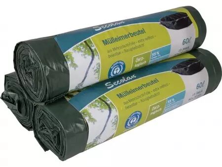 Ces sacs poubelle sont fabriqués en plastique recyclé - ce qui leur vaut le label «Ange bleu»! Leur production dégage environ 55% de CO2 de moins, et leur étanchéité et leur résistance n'ont rien à envier aux sacs poubelle conventionnels. Leur combustion génère uniquement du dioxyde de carbone et de l'eau sans laisser de déchets, et ils ne nuisent pas aux nappes phréatiques.