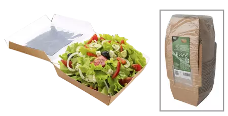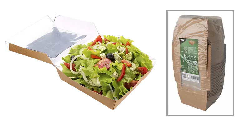 Innovante et durable, cette gamme d'emballages est fabriquée en carton fibres vierges, non blanchi certifié FSC®. Ils sont enduits d'une couche de bioplastique d'origine naturelle pour résister aux matières grasses et au chaud (PLA, issu de la transformation de l'amidon de maïs). Ils sont entièrement biodégradables, compostables et recyclables. Seuls des matériaux renouvelables rentrent dans leur composition.