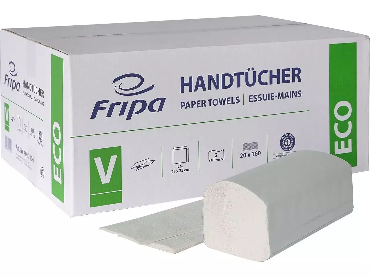 Essuie-main en papier recyclé gaufré très doux. Papier détenant le label écologique "ange bleu" car sans blanchiment, ni couleur, ni éclaircissant optique.