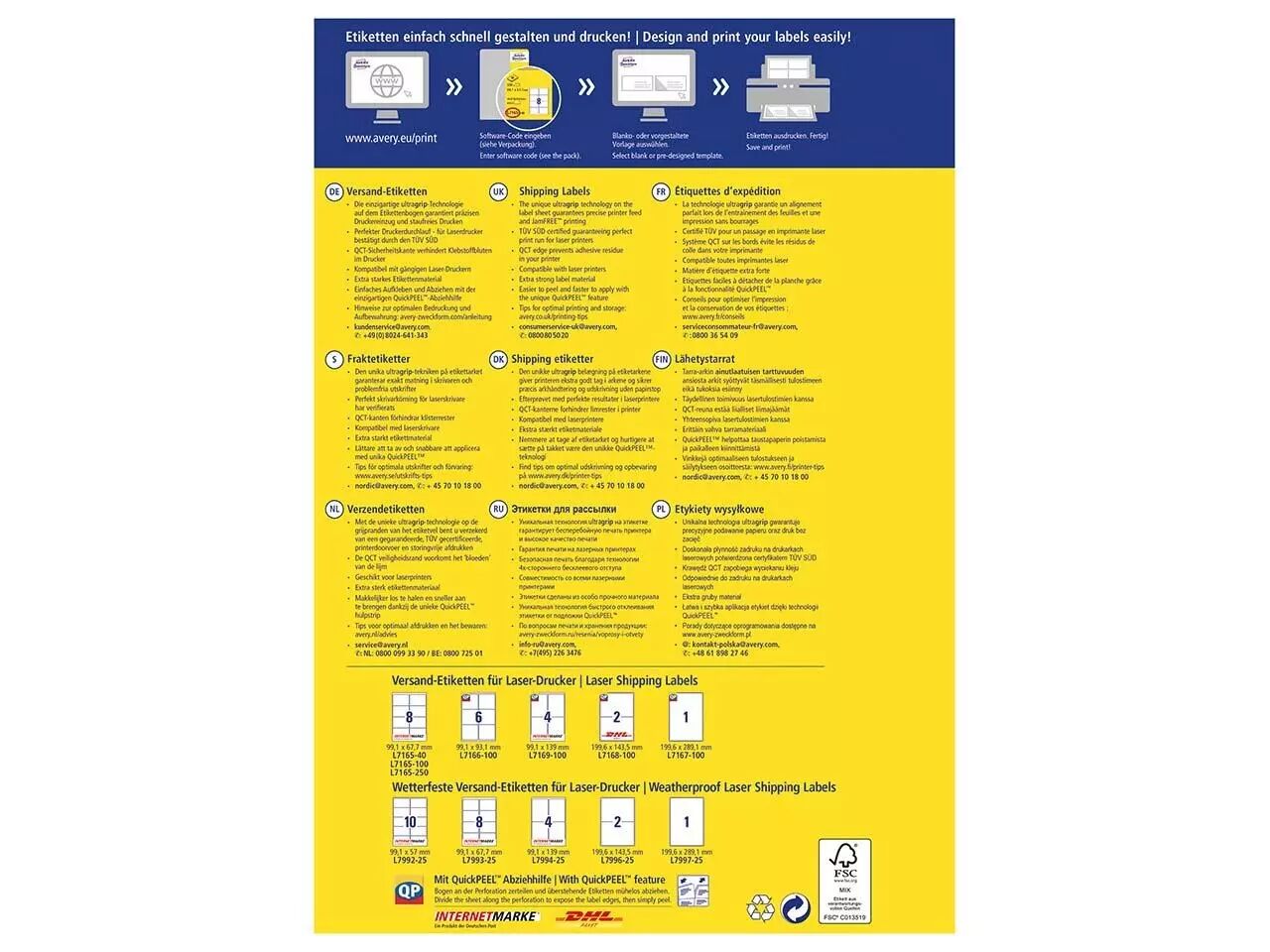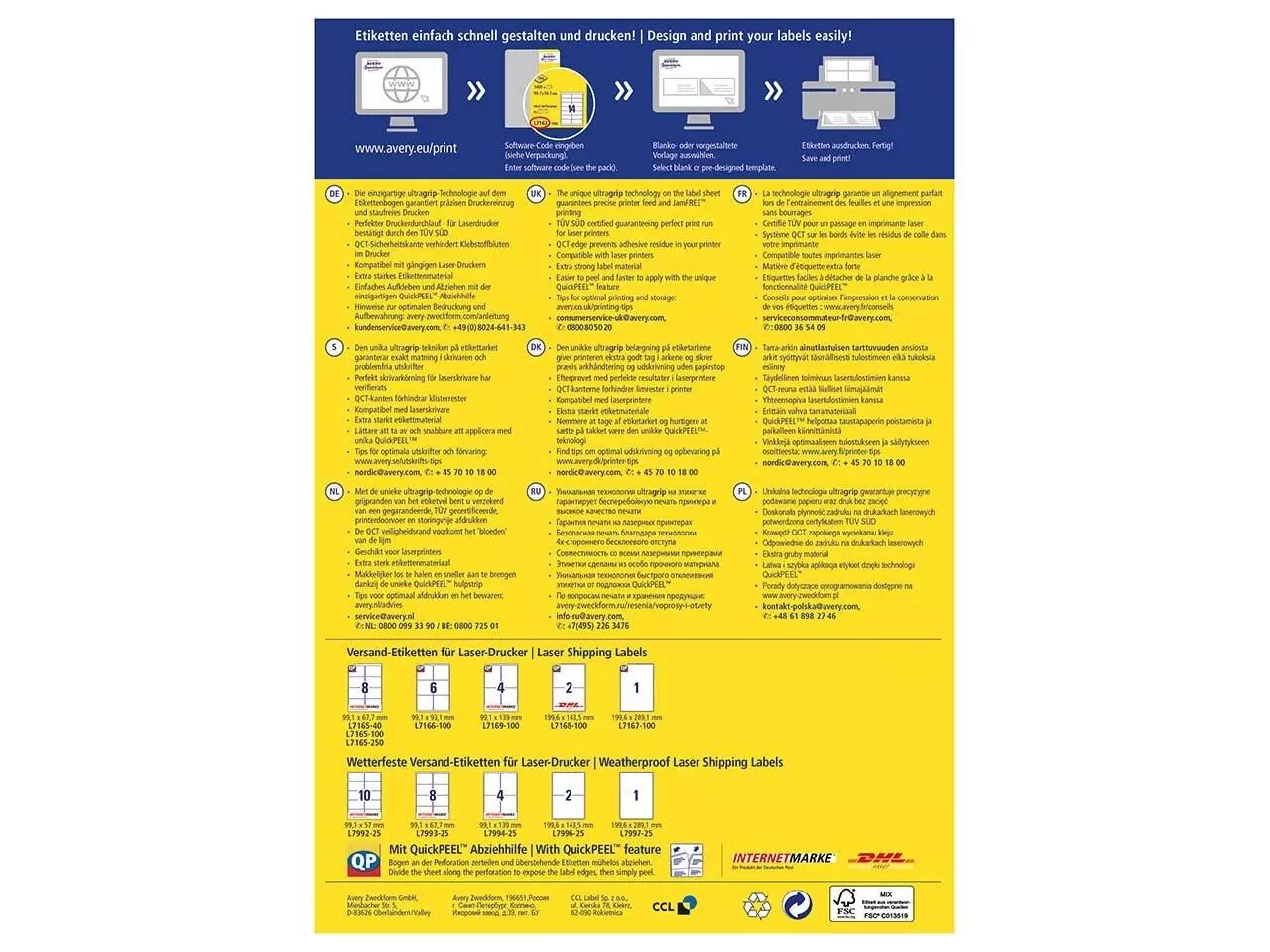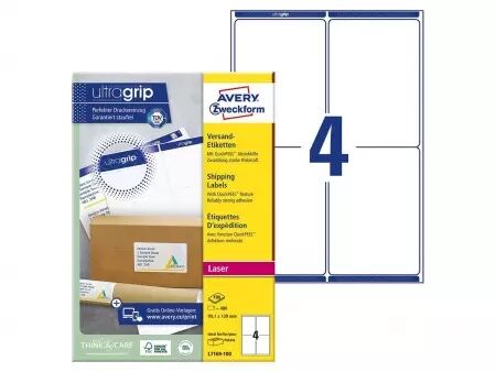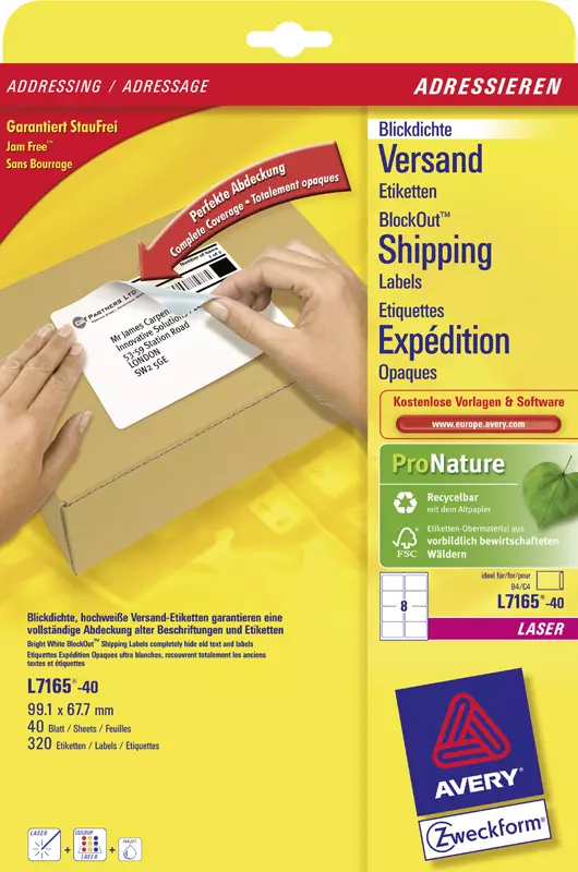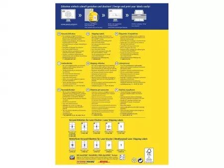 Pour recouvrir les adresses figurant sur des enveloppes déjà utilisées ! Les étiquettes d'expédition certifiées FSC® d'un blanc éclatant recouvrent les inscriptions existantes et permettent la réutilisation d'enveloppes, de paquets et de boîtes. Elles passent sans problème ni bourrage dans les imprimantes à jet d'encre et les imprimantes laser, conviennent pour l'affranchissement en ligne et sont recyclables avec les vieux papiers. La qualité ECF en six formats différents ! Planche A4. Avec bande «QuickPEEL».