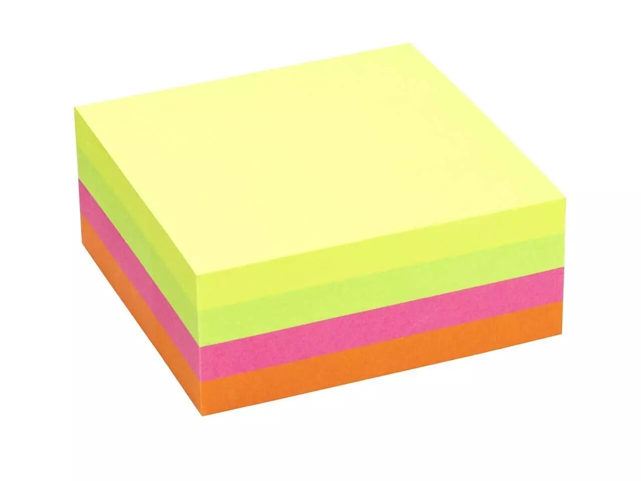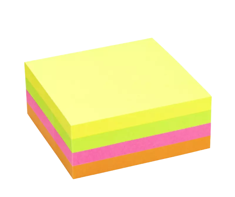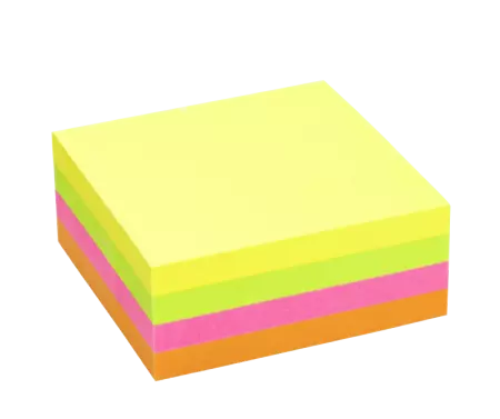4 blocs de 80 notes de 75 x 75 mm (soit 320 notes). Assortiment 4 couleurs (jaune, vert, rose, orange). Fabriqué à partir de papier fibres vierges certifié FSC®.