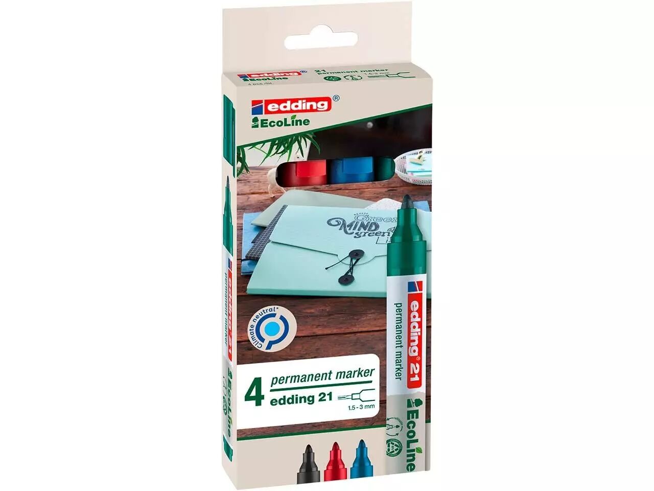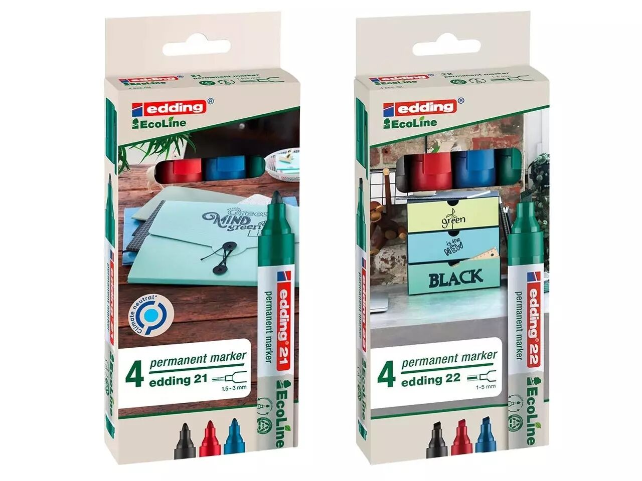 L'assortiment de marqueurs permanents écologiques edding 21/22.