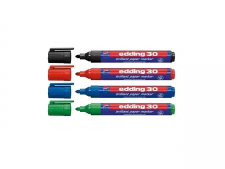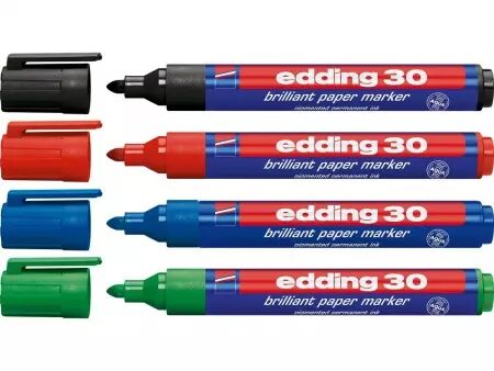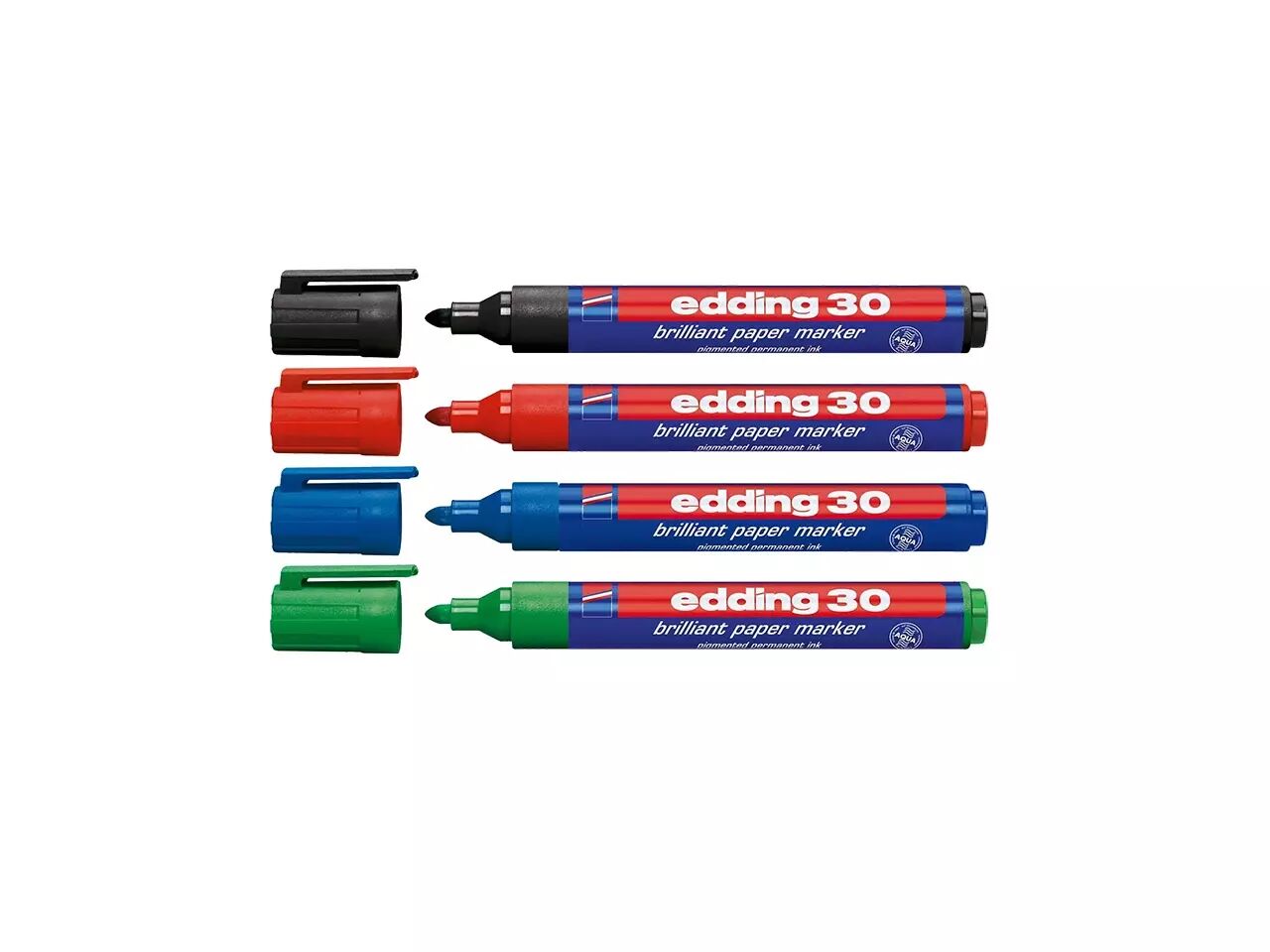 Marqueurs disponibles en 4 couleurs brillantes avec pointe ronde de 1 à 3 mm (Edding 30).