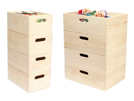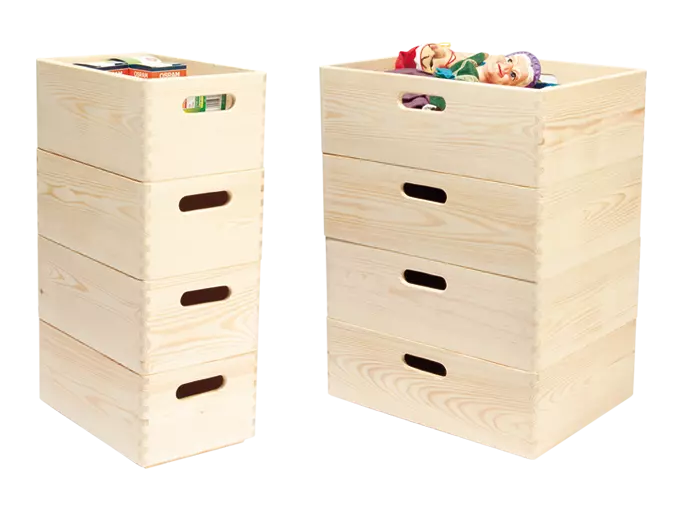 Empiler, c'est pratique ! Avec "Vent", cela devient, en plus, amusant : que ce soit dans une chambre d'enfant ou d'adulte, dans le salon ou dans le célier, chaque agencement est réalisé en un clin d'œil. De grosses poignées percées dans les côtés permettent un transport sûr et rondement mené. Avec corps à assemblage à queue droite en pin massif. Couvercle et fond en contreplaqué de bouleau. Les bois utilisés ne sont pas traités et sont certifiés FSC®.