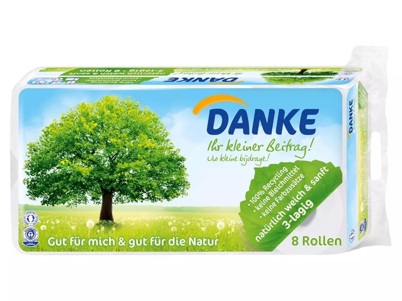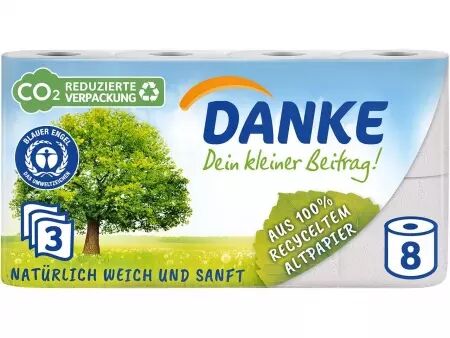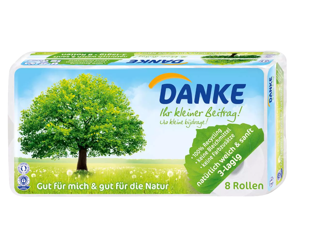Le lot de 56 rouleaux de papier toilette recyclé "Danke".