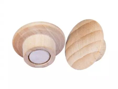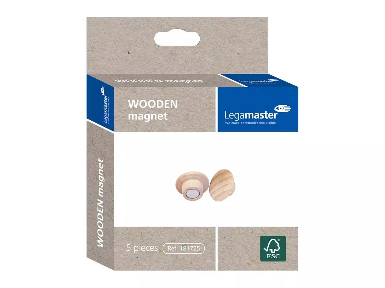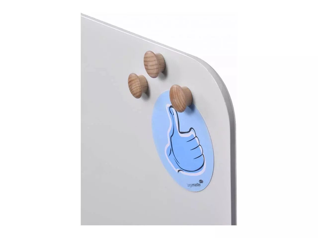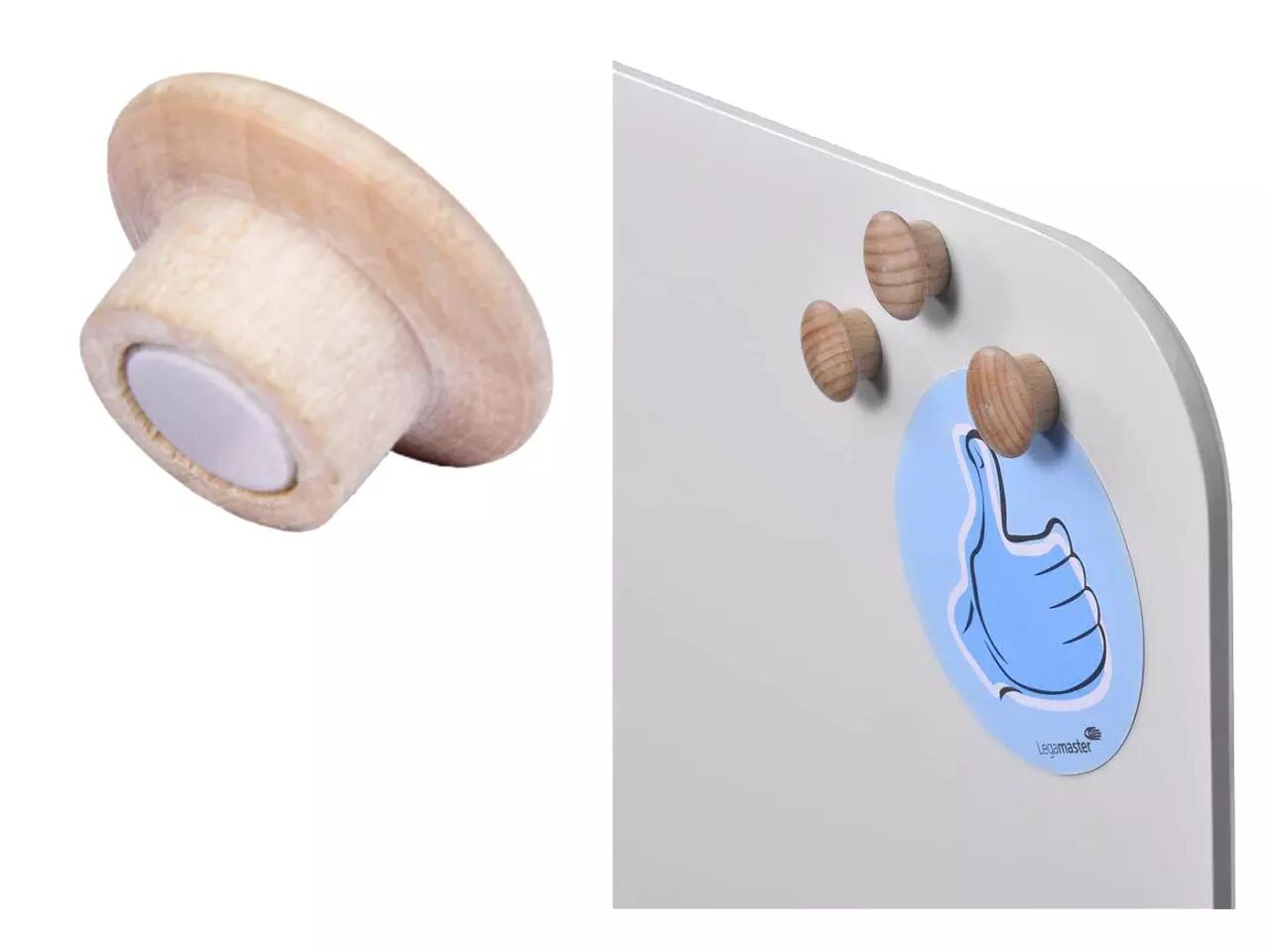 Aimants pour les tableaux blancs et les tableaux en verre ferromanétiques. La partie que l'on saisit à la main est fabriquée en bois de hêtre laqué provenant de forêts gérées de manière durable et certifié.