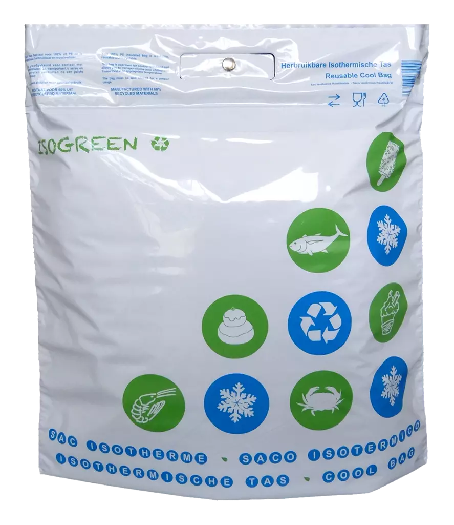 Ces sacs isothermes sont Eco Responsables car fabriqués à partir de 60% de matières recyclées (polyéthylène - PE).