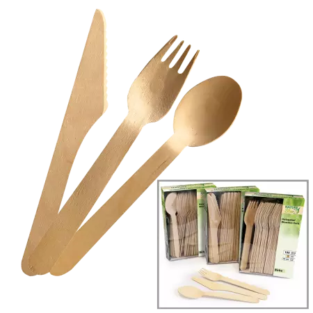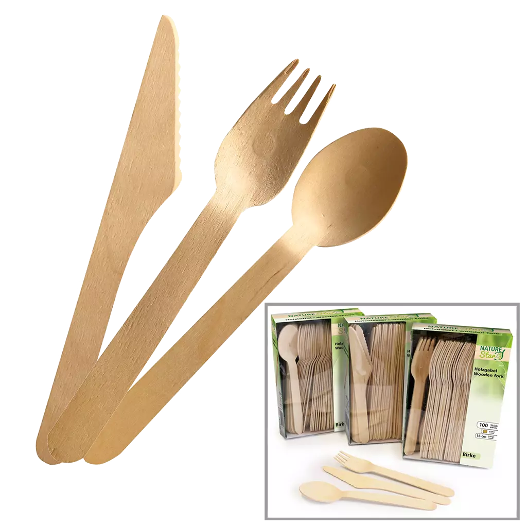 Fourchette, couteau ou cuillère en bois de bouleau, particulièrement solide et neutre en goût, adapté au contact alimententaire. Écologiques car issus de ressources renouvelables et conforme à la norme européenne EN 13432 sur la compostabilité. Longueur 160 mm. Vendu uniquement au lot de 500 pièces.