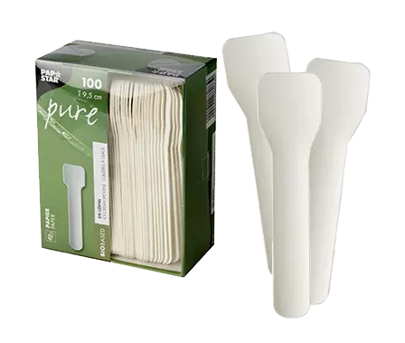 Ces cuillères en papier alimentaire certifié FSC® sont parfaitement adaptées pour les glaces. Solides et au goût neutre, elles se substituent aux traditionnelles cuillères en plastique. Biodégradables, elles ne viendront pas polluer notre environnement.