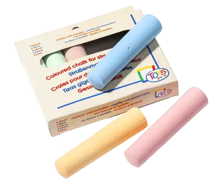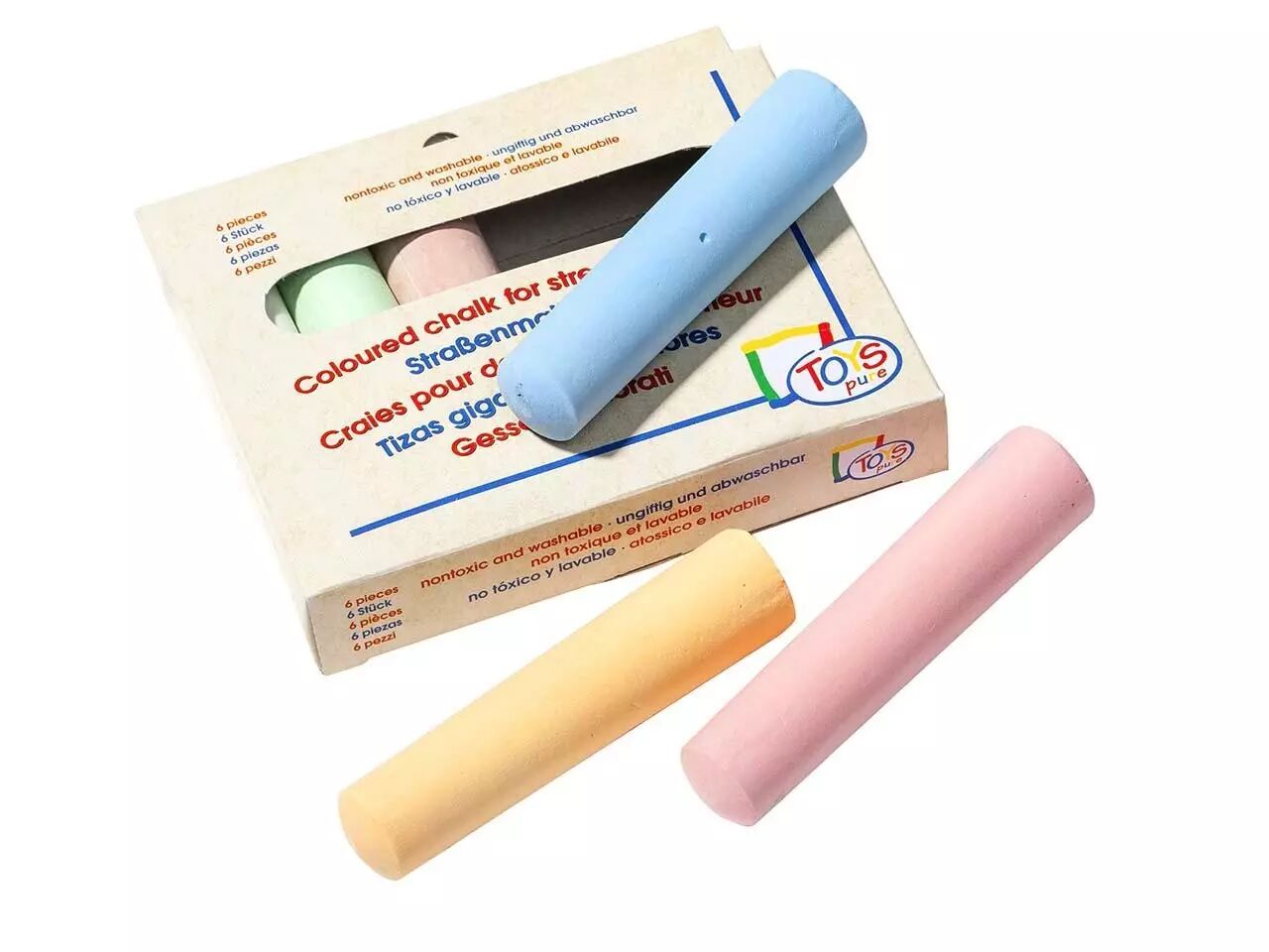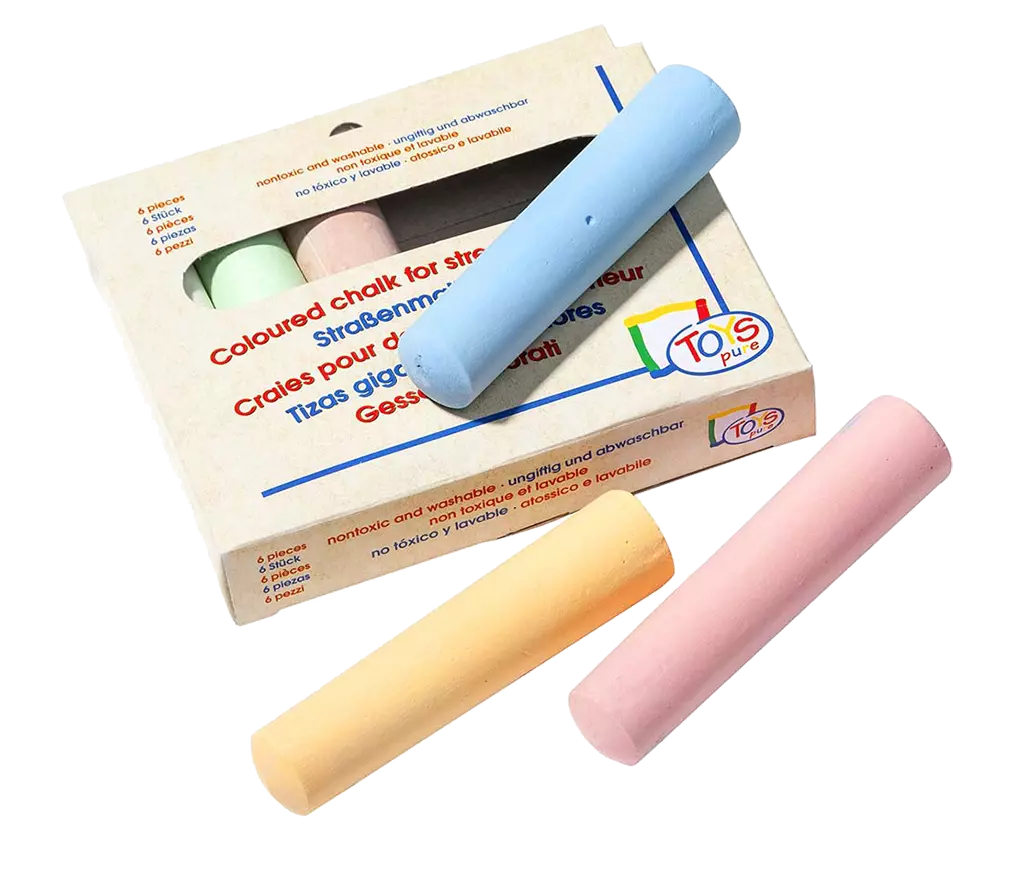 Un classique qui plaît à tous les enfants : décoration des trottoirs ou tracé de jeux. Fabrication à partir de matières premières sans métaux lourds, ni soufre, conforme à la norme DIN EN 71, effaçable à l'eau sans problème. La forme ronde et épaisse (longueur 105 mm, diamètre 20 mm) convient même aux plus petits. En 6 couleurs (blanc, vert, rouge, bleu, jaune et brun), emballage carton recyclé.