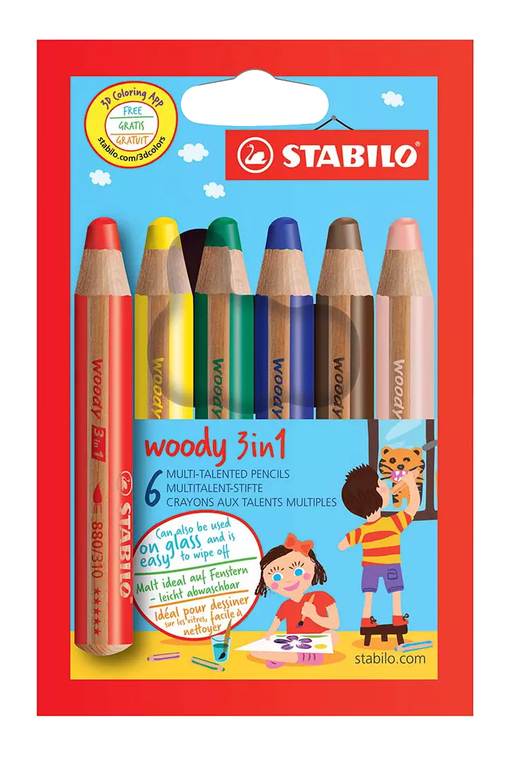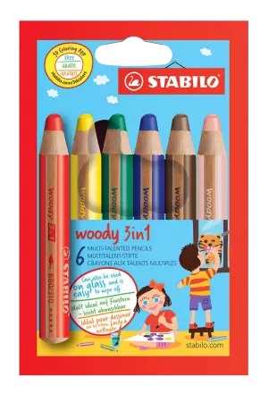 Les 6 crayons de couleur géants Stabilo « Woody ».