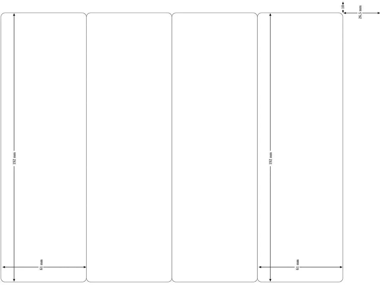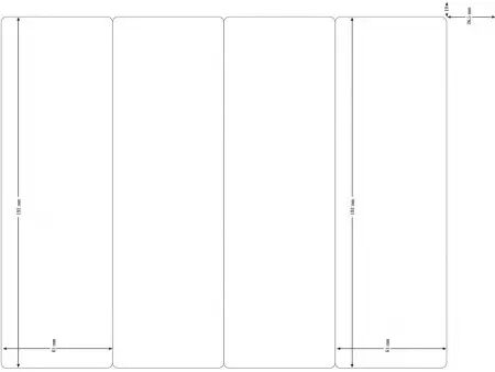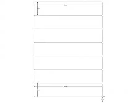 Deux dimensions : 192 x 38 mm (7 étiquettes par feuille) et 192 x 61 mm (4 étiquettes par feuille).