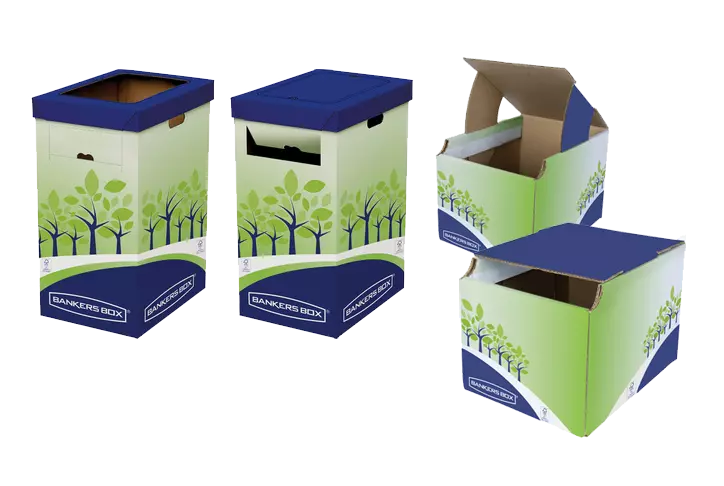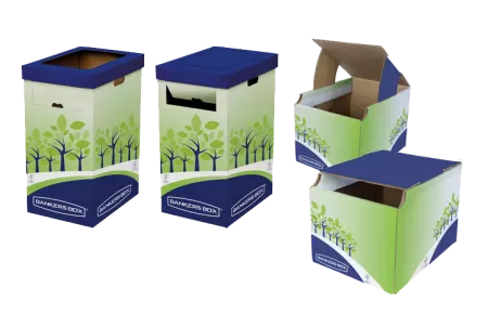 - grand collecteur à placer sous un bureau ou comme point centrale de collecte, avec fente à l'avant et une ouverture au dessus (la capacité dépend de l'ouverture utilisée : 69 litres avec ouverture sur le dessus et 36 litres avec ouverture sur le côté)