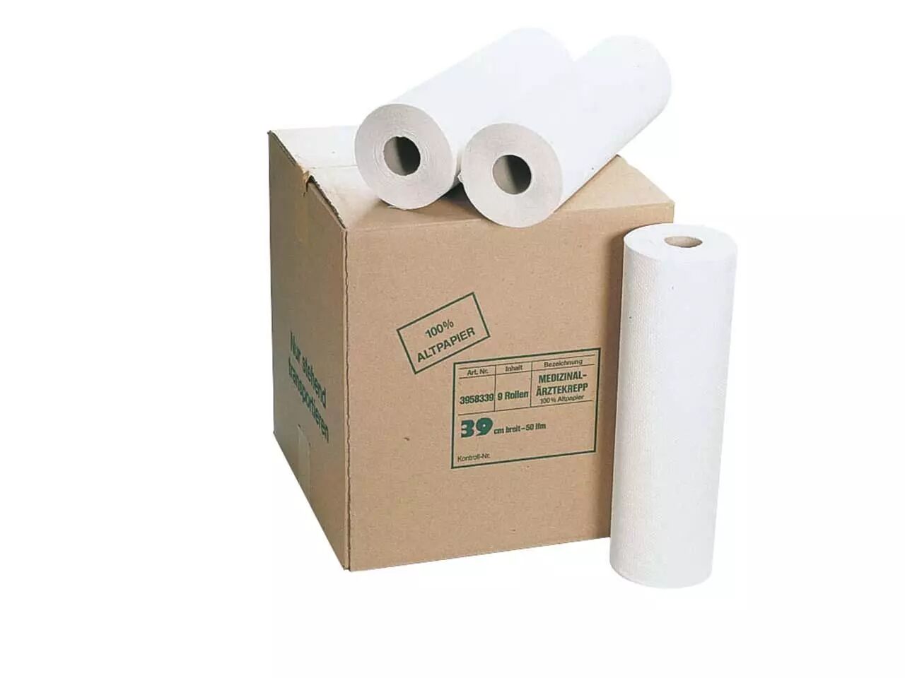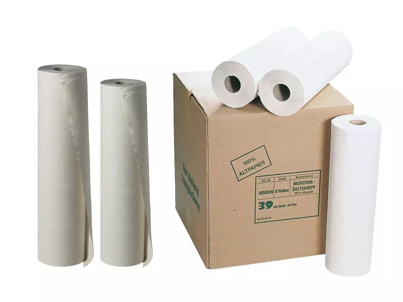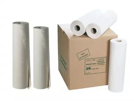 Les 9 rouleaux de draps d'examen recyclés crêpés.