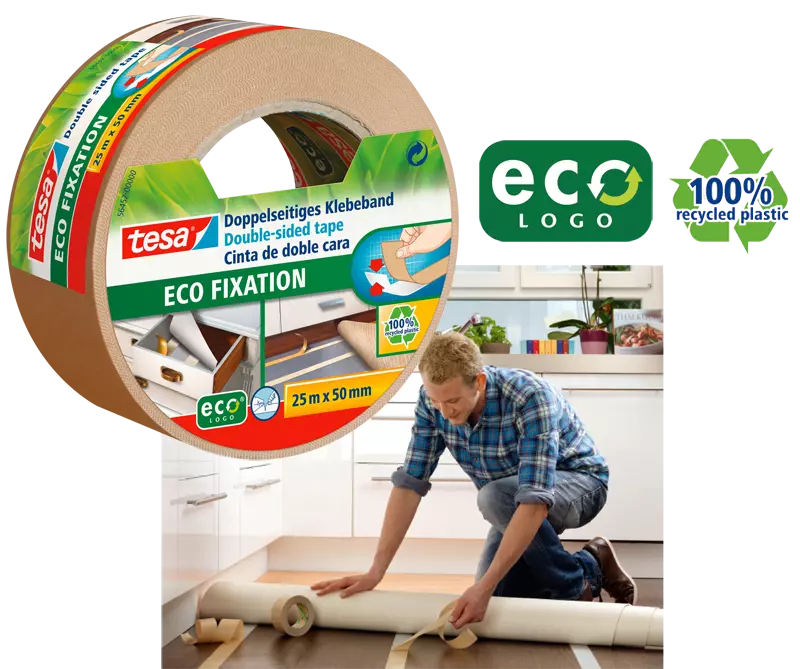 Le support est constitué de plastique recyclé à 100 %. Le papier de séparation est 100 % sans solvants et sans agents de blanchiment.