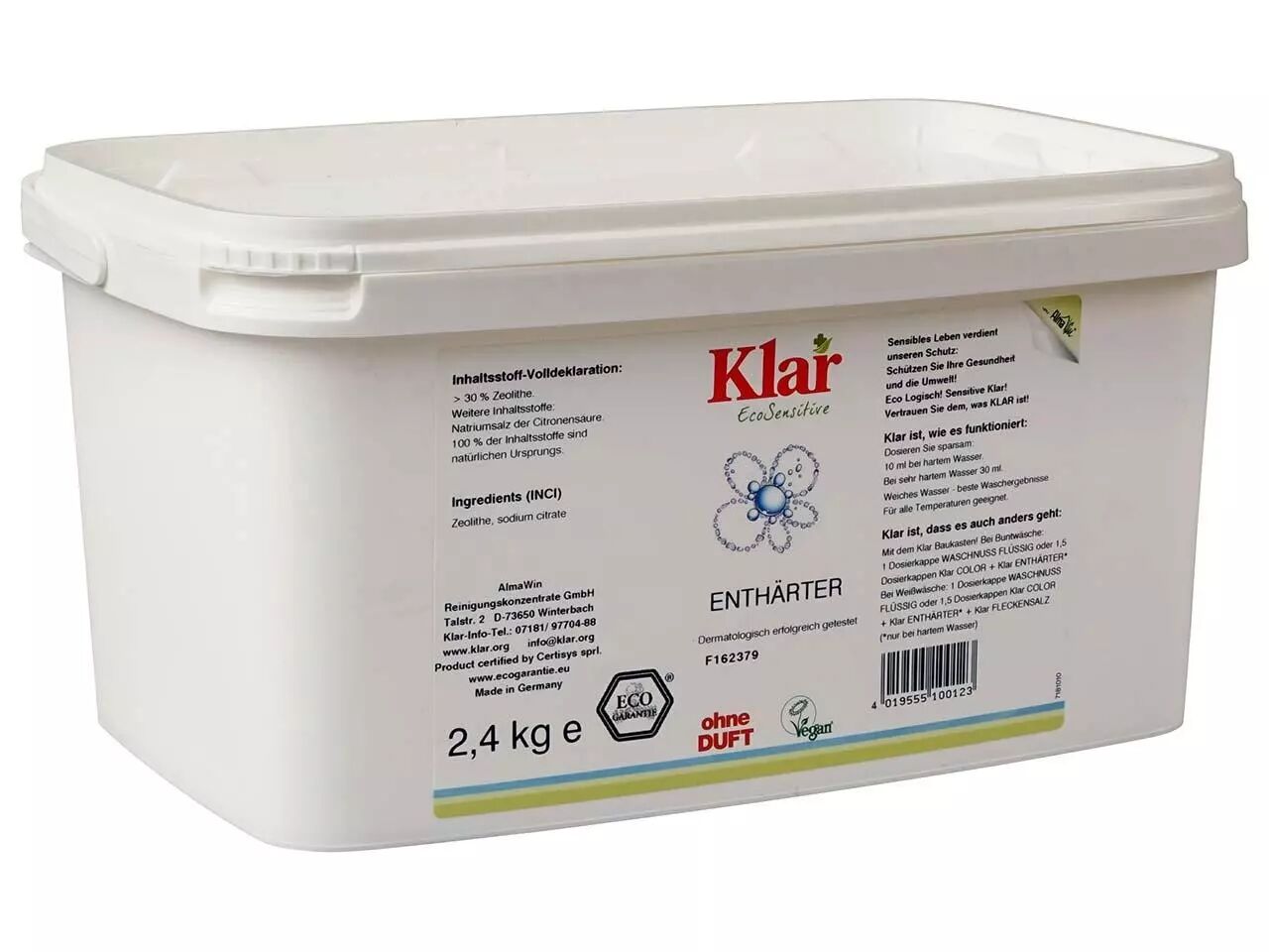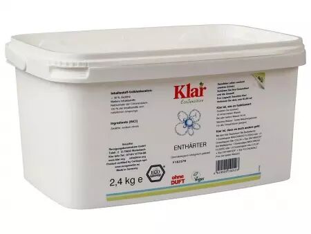 Il ne faut pas confondre l'adoucisseur d'eau et les assouplissants pour le linge. L'adoucisseur est présent dans toutes les lessives classiques. Dans les recommandations d'utilisation d'une lessive classique, le dosage est à adapter en fonction de la dûreté de votre eau du robinet : plus votre eau est dûre, plus vous mettez de lessive, alors qu'il conviendrait de seulement neutraliser le calcaire de votre eau ! Ici, avec les produits KLAR vous dosez l'adoucisseur indépendamment de la base lavante : vous utilisez ainsi juste ce qu'il faut de produit, et minimisez les rejets dans l'environnement !