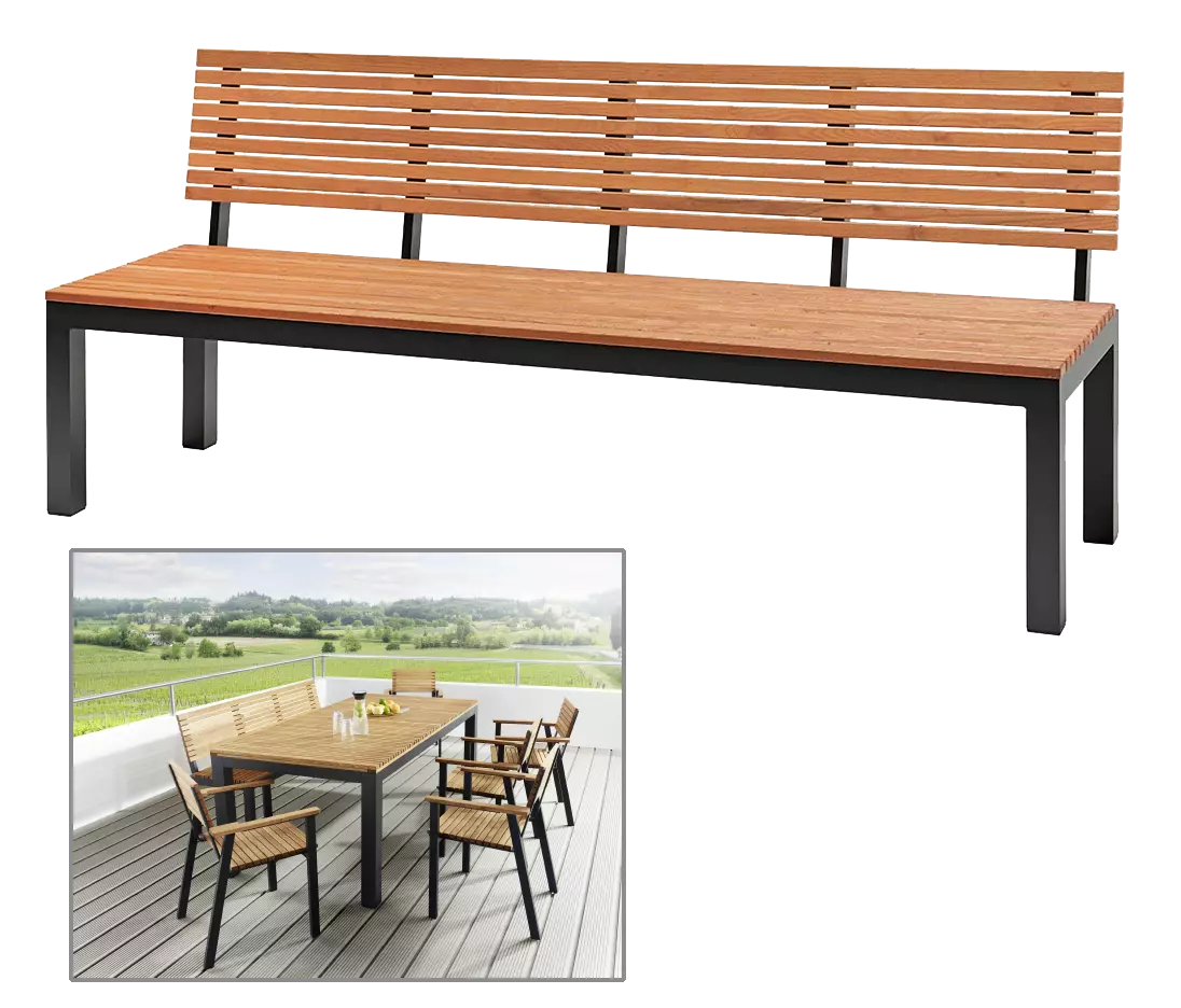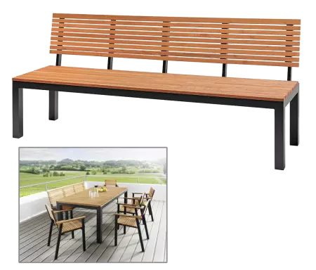 Ces beaux meubles légers trouvent leur place sur toutes les terrasses ! Le bois de robinier lasuré qui résiste aux intempéries est certifié FSC®. Les pieds et la structure sont en aluminium léger et solide, thermolaqué couleur anthracite. Ainsi, les meubles sont légers et faciles à déplacer.