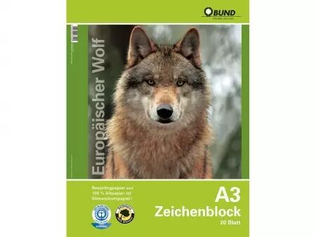 Formats A5, A4 et A3. Papier recyclé, label écologique « Ange Bleu ».