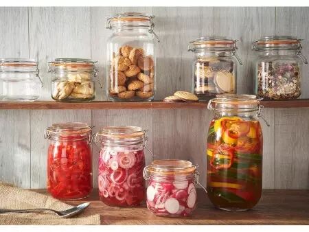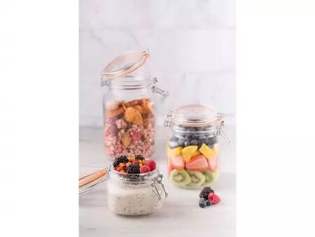 Conservez vos aliments de manière optimale, sûre, neutre en goût et sans substances nocives?! Grâce à leur système de fermeture en acier inoxydable, vous pourrez fermer de manière hermétique ces bocaux en verre et conserver vos aliments pendant longtemps.