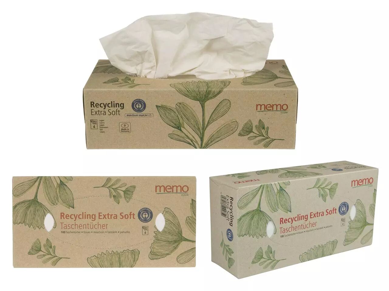 Les indispensables de l'Ange Bleu : des mouchoirs extra doux 4 épaisseurs, à base de fibres de papier 100 % recyclé. La boîte est également fabriquée à partir de matériaux recyclés, sans aucun élément en film plastique. Boîte de 100 mouchoirs.