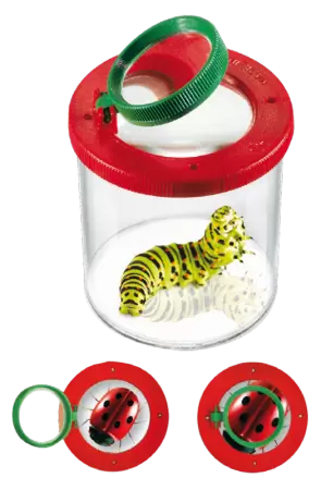 Avec cette boîte à insectes, les apprentis biologistes déposent soigneusement de petits objets d'étude comme les feuilles, fleurs, insectes et chenilles, dans la boîte, qui se ferme avec un couvercle muni de trous d'aération et d'une loupe grossissante (2 à 4 fois), pour observer en toute quiétude les merveilles qu'ils auront ramassées !