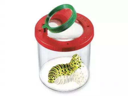 Avec cette boîte loupe, les apprentis biologistes déposent soigneusement de petits objets d'étude comme des feuilles, des fleurs, des insectes (coléoptères, araignées,  mouches) ou des chenilles, dans la boîte, qui se ferme avec un couvercle muni de trous d'aération et d'une loupe (qui grossit 2 à 4 fois), pour observer en toute quiétude les merveilles de la nature !
