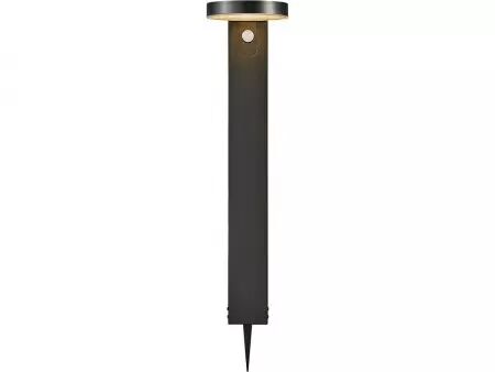 Ces bornes fonctionnent à l'énergie solaire et se chargent pendant la journée grâce à la lumière du soleil. Le capteur de mouvement les allument automatiquement quand quelqu'un passe à proximité dans la pénombre. La lumière orientée vers le sol convient particulièrement à l'éclairage des allées, patio, etc. La borne est simple d'installation : il suffit de la planter dans le sol à l'aide du pieu inclus. La LED blanche ton chaud intégrée fournit une lumière agréable. Disponible avec une tête ronde ou rectangulaire.