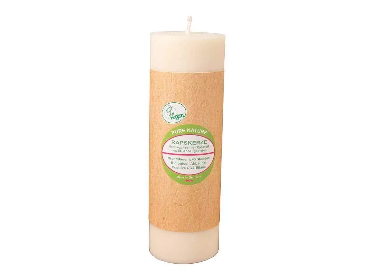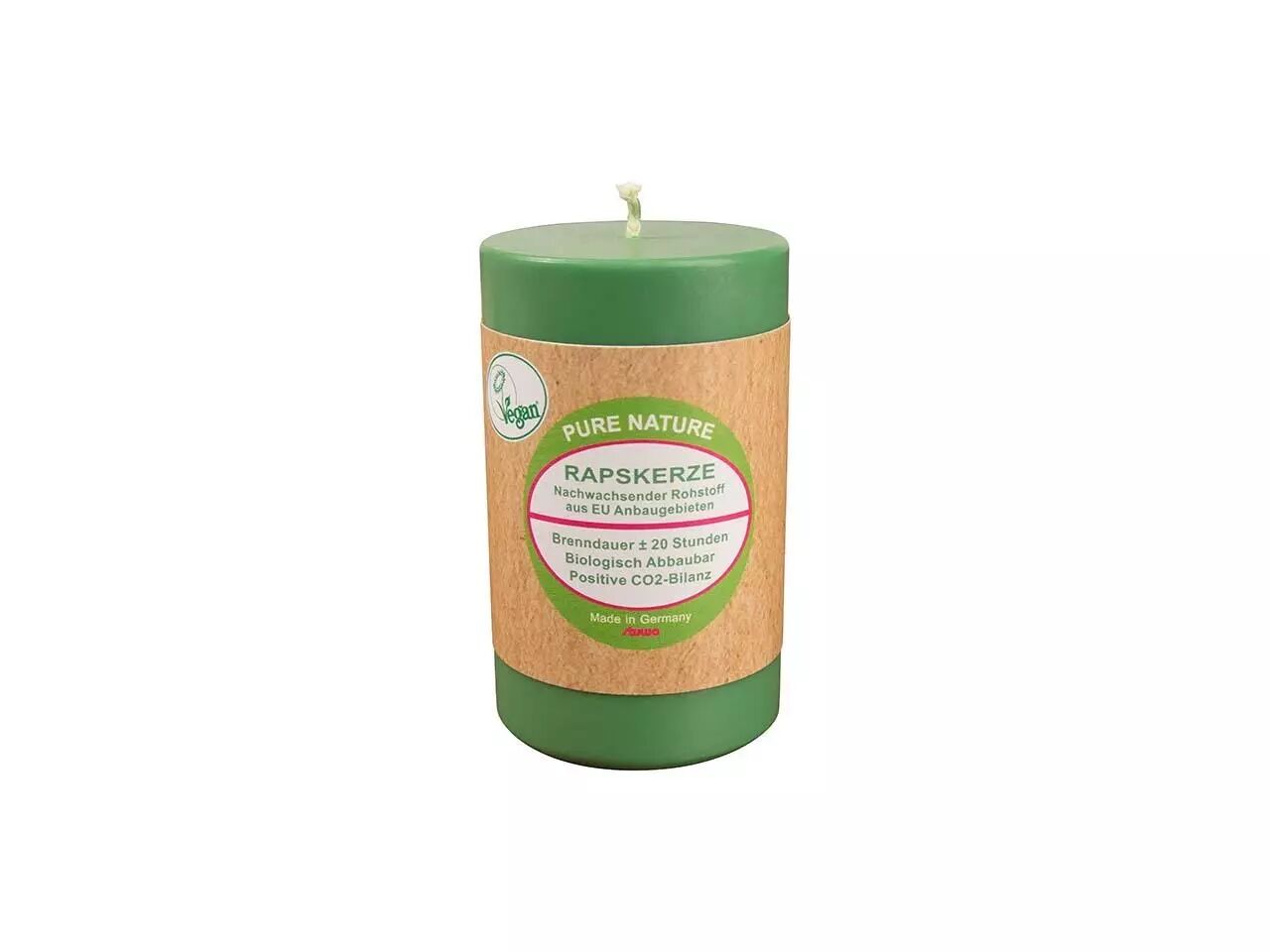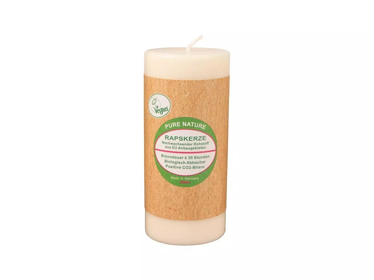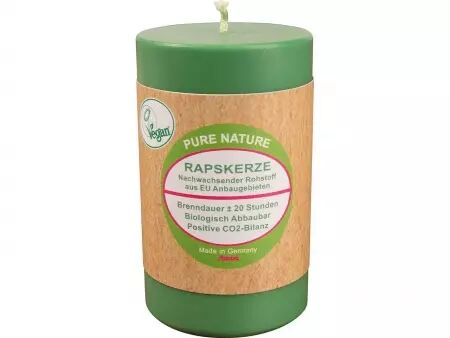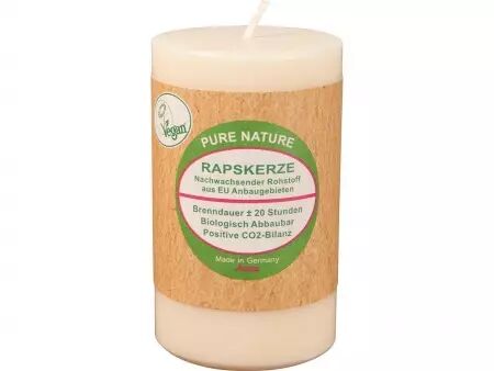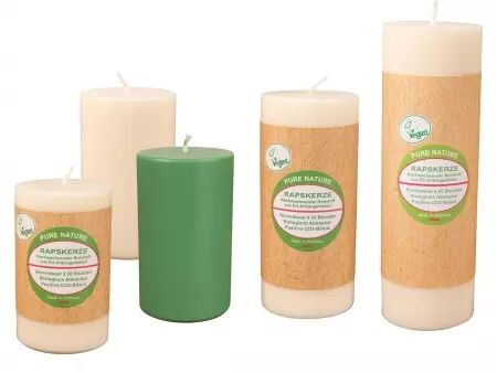 Les bougies vegans "Pure Nature" marient esthétisme et écologie : leur fabrication à base de cire de colza est plus vertueuse que celles à base de paraffine ou stéarine. Les bougies en colza fabriquées à la main présentent d'excellentes propriétés de combustion (durée de combustion d'environ 20 à 45 heures selon les modèles). La mèche en coton n'est pas blanchie et les couleurs utilisées sont à base d'huile végétale.