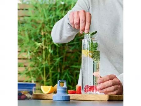 Une gourde en Tritan, un plastique haute performance sans BPA et lavable au lave-vaisselle, pour emmener votre boisson au bureau ou en déplacement. La base antidérapante empêche également la bouteille de glisser sur les surfaces lisses. La gourde possède une large ouverture qui simplifie le nettoyage et le remplissage. Le bouchon à vis est particulièrement pratique. Capacité de 0,7 l.